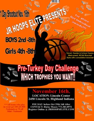 11/16 Pre Turkey Day Challenge Tournament10/12 Octoberfest10/26 Octoberfest11/16 Pre Turkey Day Challenge12/21 Double Down In December1/11 January Jam Fest2/1 Fab Feb Feeder,School & Travel Shootout.Other Amount:Team Name, Gender & Grade: